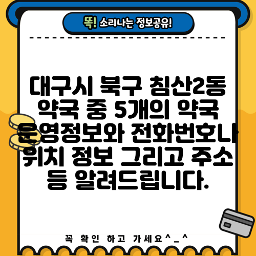 대구시 북구 침산2동 약국 중 5개의 약국 운영정보와 전화번호나 위치 정보 그리고 주소 등 알려드립니다.