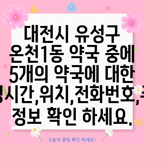 대전시 유성구 온천1동 약국 중에 5개의 약국에 대한 운영시간,위치,전화번호,주소 정보 확인 하세요.