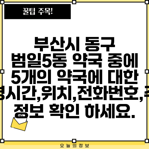 부산시 동구 범일5동 약국 중에 5개의 약국에 대한 운영시간,위치,전화번호,주소 정보 확인 하세요.