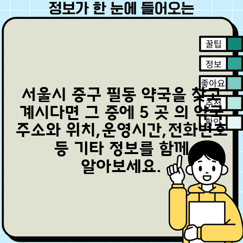 서울시 중구 필동 약국을 찾고 계시다면 그 중에 5 곳 의 약국 주소와 위치,운영시간,전화번호 등 기타 정보를 함께 알아보세요.
