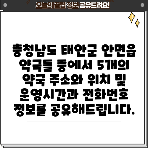 충청남도 태안군 안면읍 약국들 중에서 5개의 약국 주소와 위치 및 운영시간과 전화번호 정보를 공유해드립니다.