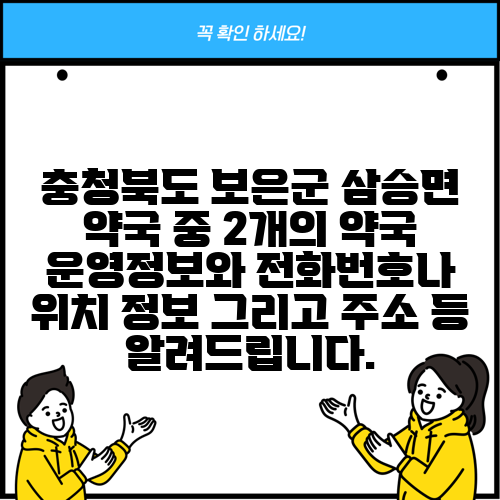 충청북도 보은군 삼승면 약국 중 2개의 약국 운영정보와 전화번호나 위치 정보 그리고 주소 등 알려드립니다.