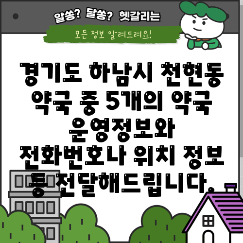 경기도 하남시 천현동 약국 중 5개의 약국 운영정보와 전화번호나 위치 정보 등 전달해드립니다.