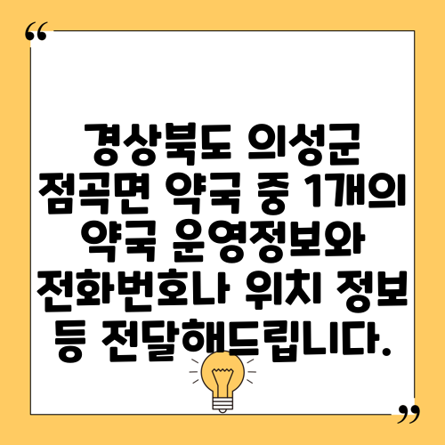 경상북도 의성군 점곡면 약국 중 1개의 약국 운영정보와 전화번호나 위치 정보 등 전달해드립니다.