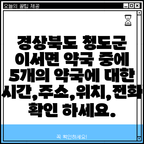 경상북도 청도군 이서면 약국 중에 5개의 약국에 대한 운영시간,주소,위치,전화번호 확인 하세요.