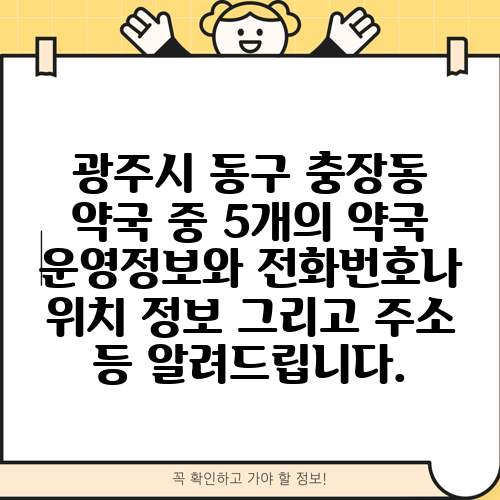 광주시 동구 충장동 약국 중 5개의 약국 운영정보와 전화번호나 위치 정보 그리고 주소 등 알려드립니다.