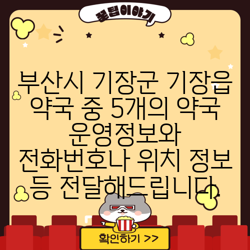 부산시 기장군 기장읍 약국 중 5개의 약국 운영정보와 전화번호나 위치 정보 등 전달해드립니다.