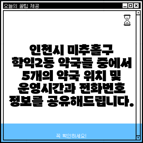 인천시 미추홀구 학익2동 약국들 중에서 5개의 약국 위치 및 운영시간과 전화번호 정보를 공유해드립니다.