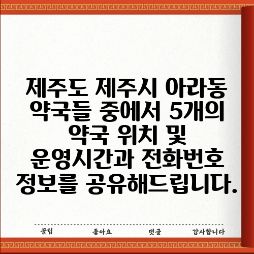 제주도 제주시 아라동 약국들 중에서 5개의 약국 위치 및 운영시간과 전화번호 정보를 공유해드립니다.