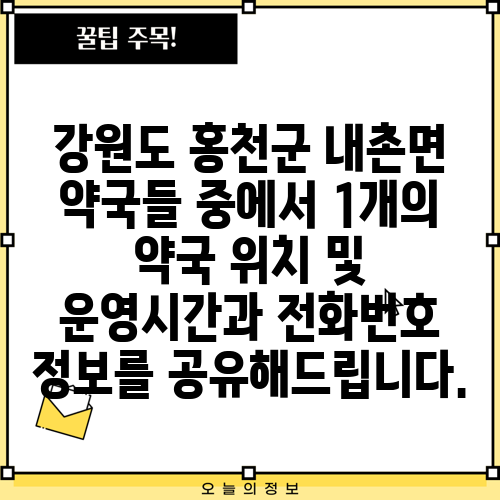 강원도 홍천군 내촌면 약국들 중에서 1개의 약국 위치 및 운영시간과 전화번호 정보를 공유해드립니다.