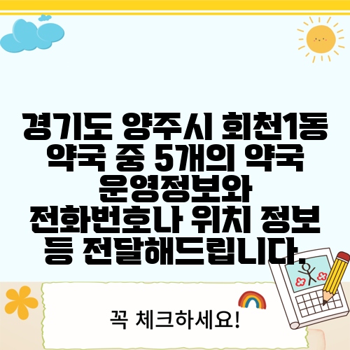 경기도 양주시 회천1동 약국 중 5개의 약국 운영정보와 전화번호나 위치 정보 등 전달해드립니다.