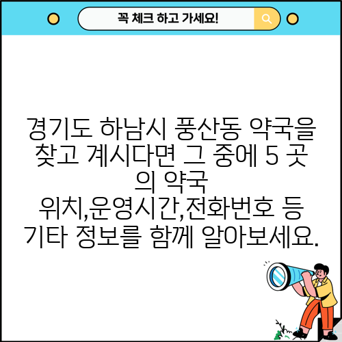 경기도 하남시 풍산동 약국을 찾고 계시다면 그 중에 5 곳 의 약국 위치,운영시간,전화번호 등 기타 정보를 함께 알아보세요.