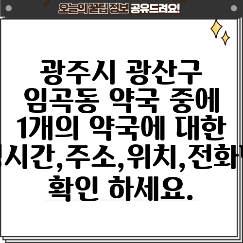 광주시 광산구 임곡동 약국 중에 1개의 약국에 대한 운영시간,주소,위치,전화번호 확인 하세요.