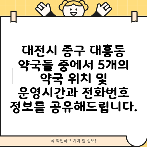 대전시 중구 대흥동 약국들 중에서 5개의 약국 위치 및 운영시간과 전화번호 정보를 공유해드립니다.