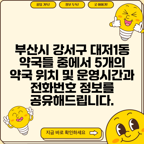 부산시 강서구 대저1동 약국들 중에서 5개의 약국 위치 및 운영시간과 전화번호 정보를 공유해드립니다.