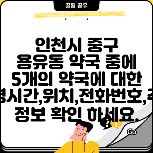 인천시 중구 용유동 약국 중에 5개의 약국에 대한 운영시간,위치,전화번호,주소 정보 확인 하세요.
