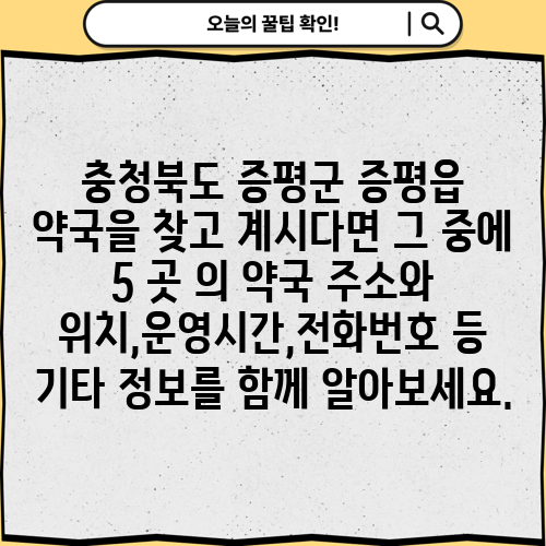 충청북도 증평군 증평읍 약국을 찾고 계시다면 그 중에 5 곳 의 약국 주소와 위치,운영시간,전화번호 등 기타 정보를 함께 알아보세요.