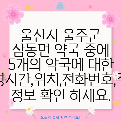 울산시 울주군 삼동면 약국 중에 5개의 약국에 대한 운영시간,위치,전화번호,주소 정보 확인 하세요.