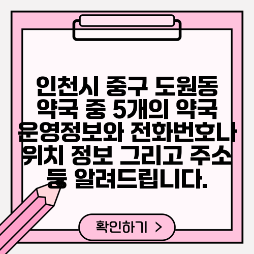 인천시 중구 도원동 약국 중 5개의 약국 운영정보와 전화번호나 위치 정보 그리고 주소 등 알려드립니다.