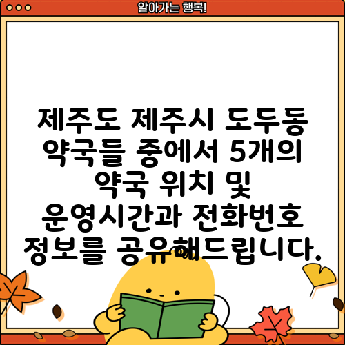 제주도 제주시 도두동 약국들 중에서 5개의 약국 위치 및 운영시간과 전화번호 정보를 공유해드립니다.