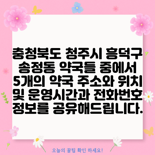 충청북도 청주시 흥덕구 송정동 약국들 중에서 5개의 약국 주소와 위치 및 운영시간과 전화번호 정보를 공유해드립니다.