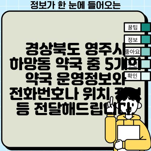 경상북도 영주시 하망동 약국 중 5개의 약국 운영정보와 전화번호나 위치 정보 등 전달해드립니다.