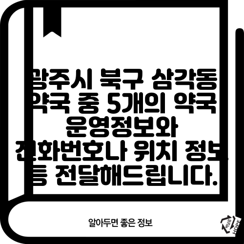 광주시 북구 삼각동 약국 중 5개의 약국 운영정보와 전화번호나 위치 정보 등 전달해드립니다.