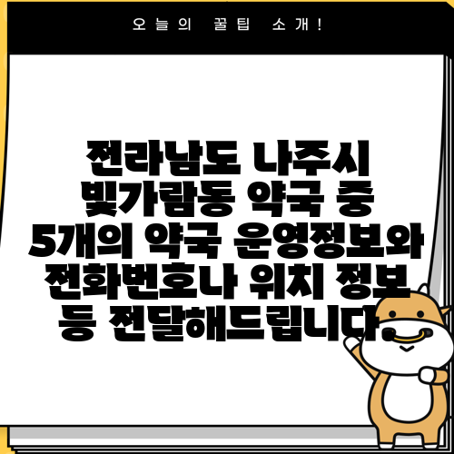 전라남도 나주시 빛가람동 약국 중 5개의 약국 운영정보와 전화번호나 위치 정보 등 전달해드립니다.