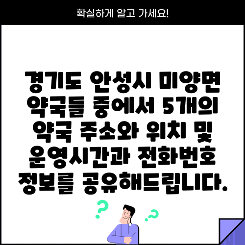 경기도 안성시 미양면 약국들 중에서 5개의 약국 주소와 위치 및 운영시간과 전화번호 정보를 공유해드립니다.