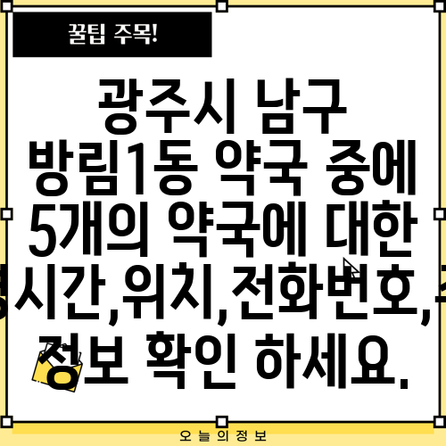 광주시 남구 방림1동 약국 중에 5개의 약국에 대한 운영시간,위치,전화번호,주소 정보 확인 하세요.