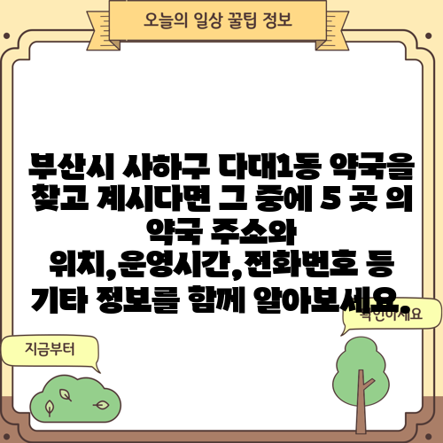 부산시 사하구 다대1동 약국을 찾고 계시다면 그 중에 5 곳 의 약국 주소와 위치,운영시간,전화번호 등 기타 정보를 함께 알아보세요.