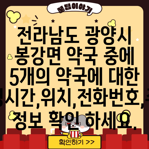 전라남도 광양시 봉강면 약국 중에 5개의 약국에 대한 운영시간,위치,전화번호,주소 정보 확인 하세요.