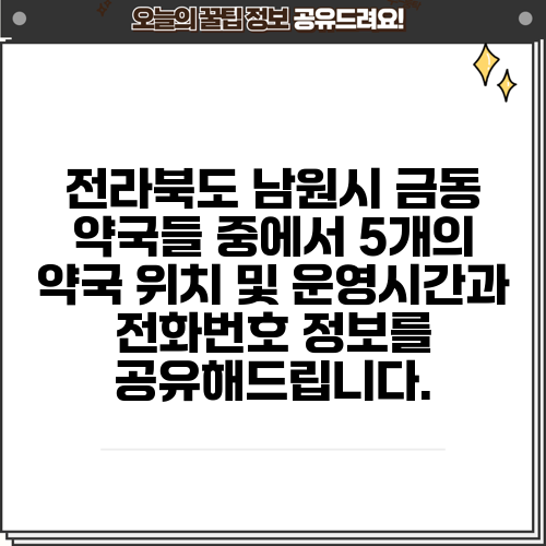 전라북도 남원시 금동 약국들 중에서 5개의 약국 위치 및 운영시간과 전화번호 정보를 공유해드립니다.