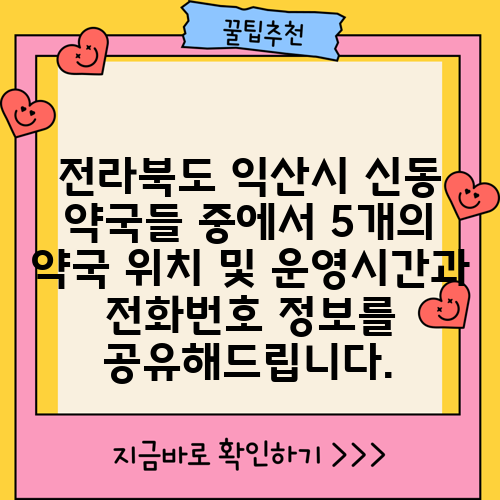 전라북도 익산시 신동 약국들 중에서 5개의 약국 위치 및 운영시간과 전화번호 정보를 공유해드립니다.
