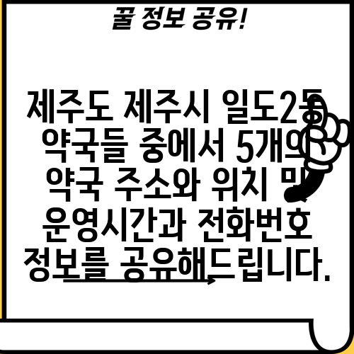 제주도 제주시 일도2동 약국들 중에서 5개의 약국 주소와 위치 및 운영시간과 전화번호 정보를 공유해드립니다.