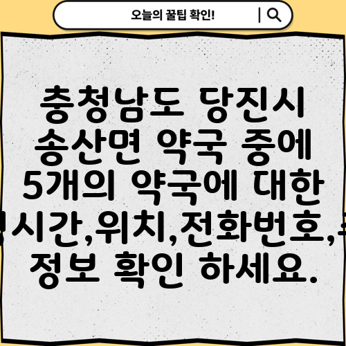 충청남도 당진시 송산면 약국 중에 5개의 약국에 대한 운영시간,위치,전화번호,주소 정보 확인 하세요.