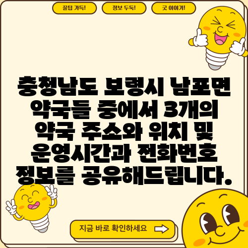충청남도 보령시 남포면 약국들 중에서 3개의 약국 주소와 위치 및 운영시간과 전화번호 정보를 공유해드립니다.
