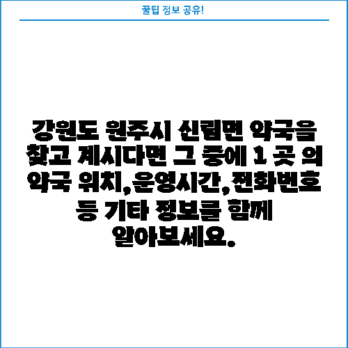 강원도 원주시 신림면 약국을 찾고 계시다면 그 중에 1 곳 의 약국 위치,운영시간,전화번호 등 기타 정보를 함께 알아보세요.