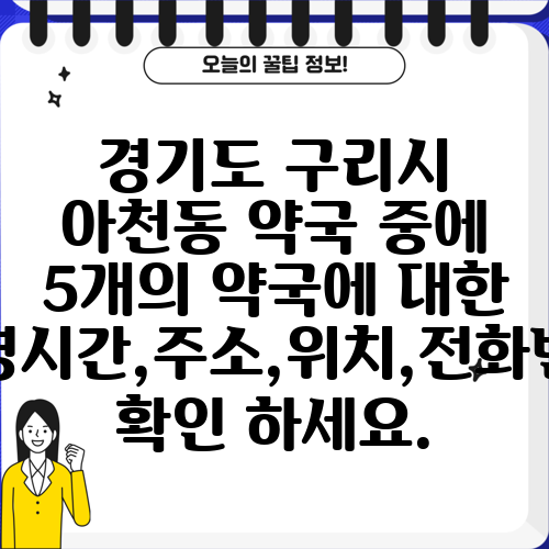 경기도 구리시 아천동 약국 중에 5개의 약국에 대한 운영시간,주소,위치,전화번호 확인 하세요.