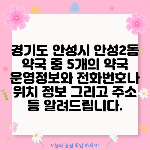 경기도 안성시 안성2동 약국 중 5개의 약국 운영정보와 전화번호나 위치 정보 그리고 주소 등 알려드립니다.