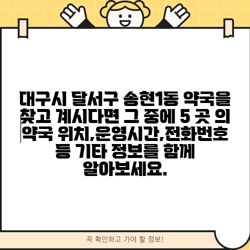 대구시 달서구 송현1동 약국을 찾고 계시다면 그 중에 5 곳 의 약국 위치,운영시간,전화번호 등 기타 정보를 함께 알아보세요.