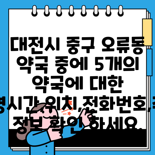 대전시 중구 오류동 약국 중에 5개의 약국에 대한 운영시간,위치,전화번호,주소 정보 확인 하세요.