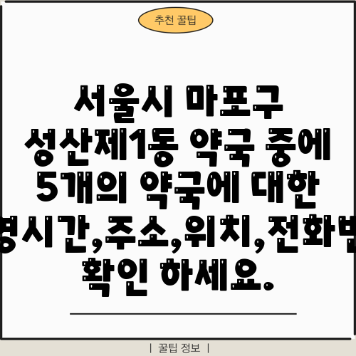 서울시 마포구 성산제1동 약국 중에 5개의 약국에 대한 운영시간,주소,위치,전화번호 확인 하세요.