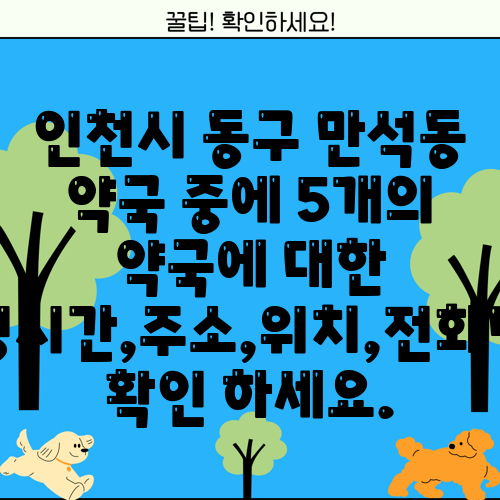 인천시 동구 만석동 약국 중에 5개의 약국에 대한 운영시간,주소,위치,전화번호 확인 하세요.