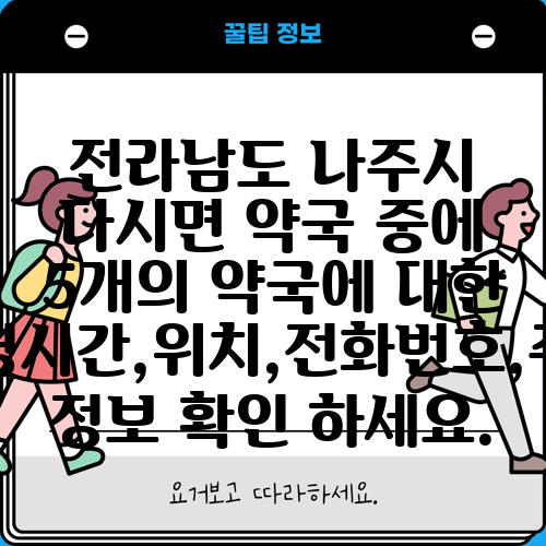 전라남도 나주시 다시면 약국 중에 5개의 약국에 대한 운영시간,위치,전화번호,주소 정보 확인 하세요.