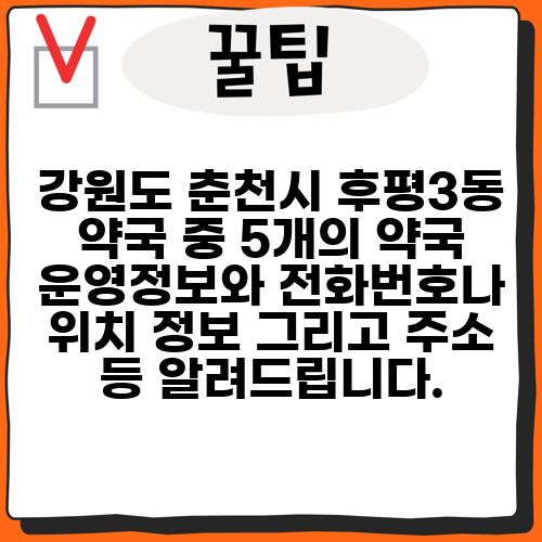 강원도 춘천시 후평3동 약국 중 5개의 약국 운영정보와 전화번호나 위치 정보 그리고 주소 등 알려드립니다.