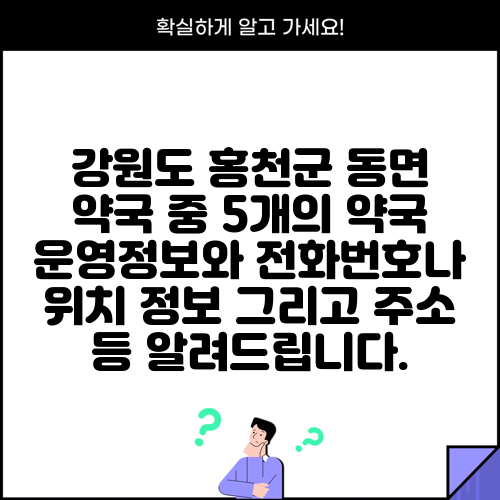 강원도 홍천군 동면 약국 중 5개의 약국 운영정보와 전화번호나 위치 정보 그리고 주소 등 알려드립니다.