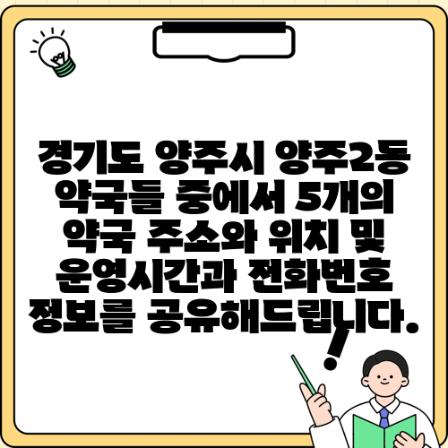 경기도 양주시 양주2동 약국들 중에서 5개의 약국 주소와 위치 및 운영시간과 전화번호 정보를 공유해드립니다.