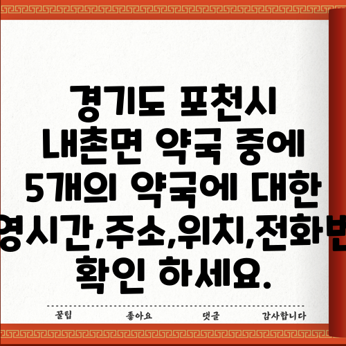 경기도 포천시 내촌면 약국 중에 5개의 약국에 대한 운영시간,주소,위치,전화번호 확인 하세요.