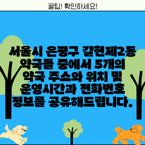 서울시 은평구 갈현제2동 약국들 중에서 5개의 약국 주소와 위치 및 운영시간과 전화번호 정보를 공유해드립니다.